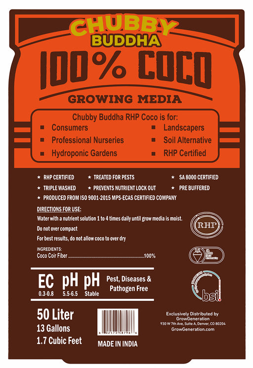 Chubby Buddha70/30 Coco + Perlita Triple lavado esterilizado y tratado con calor. 100% natural. Libre de plagas, enfermedades y patógenos Certificado RHP Pre-...